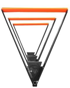 You can get superior accuracy at the higher rifle velocities by using a 4′ rail. We now include a 4′ mounting rail with each Model 35. This rail is mounted on two folding stands and works for archery, airguns, handguns, shotguns and rifles. Our simple rail starts life as a piece of 1/2 inch EMT electrical conduit. We add three precisely located dimples to hold three Skyscreens. When you tighten the single 1/4″-20 mounting screw of each Skyscreen into its own dimple, your screen spacing is precise. You need no tools at the range.